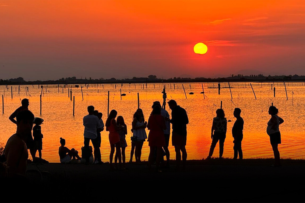 Aperitivo per due persone in un infuocato tramonto in laguna, noleggio bici e 4 drink card, musica dal vivo, atmosfera magica.