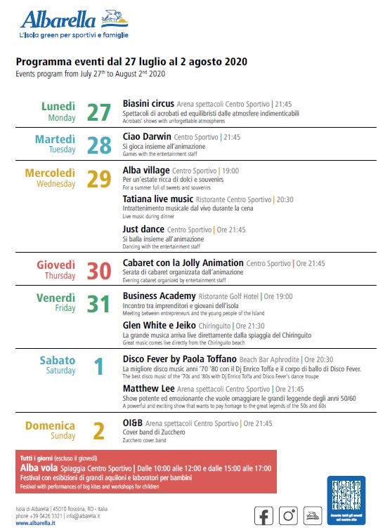 L’intera manifestazione si svolgerà all’interno dell’Isola di Albarella, all’arena spettacoli del Centro Sportivo, venerdì e sabato.