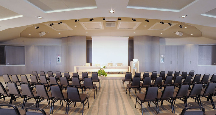 Зал с большими витражами, откуда открывается захватывающий вид на гольф поле. Оснащен современным техническим оборудованием и подходит для небольших встреч.